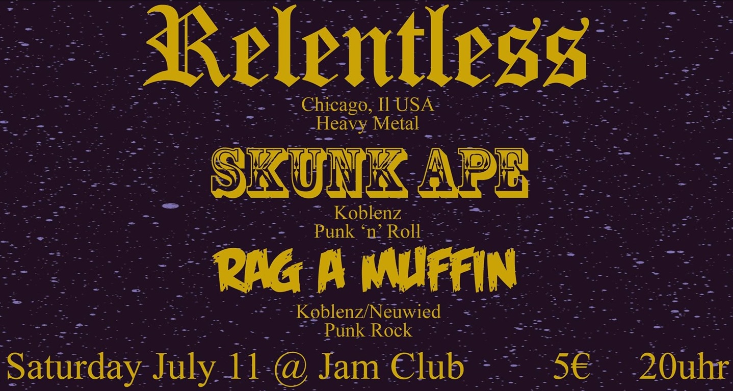 Es gibt mal wieder ein paar Neuigkeiten. Diesen Samstag supporten wir, zusammen mit Rag a Muffin, die amerikanische Band Relentless auf ihrer Europatour. Um 20 Uhr geht's im JAM Club in Koblenz los. Als wäre das nicht genug, haben wir es auch endlich geschafft, unsere Bilder hier sichtbar werden zu lassen.
